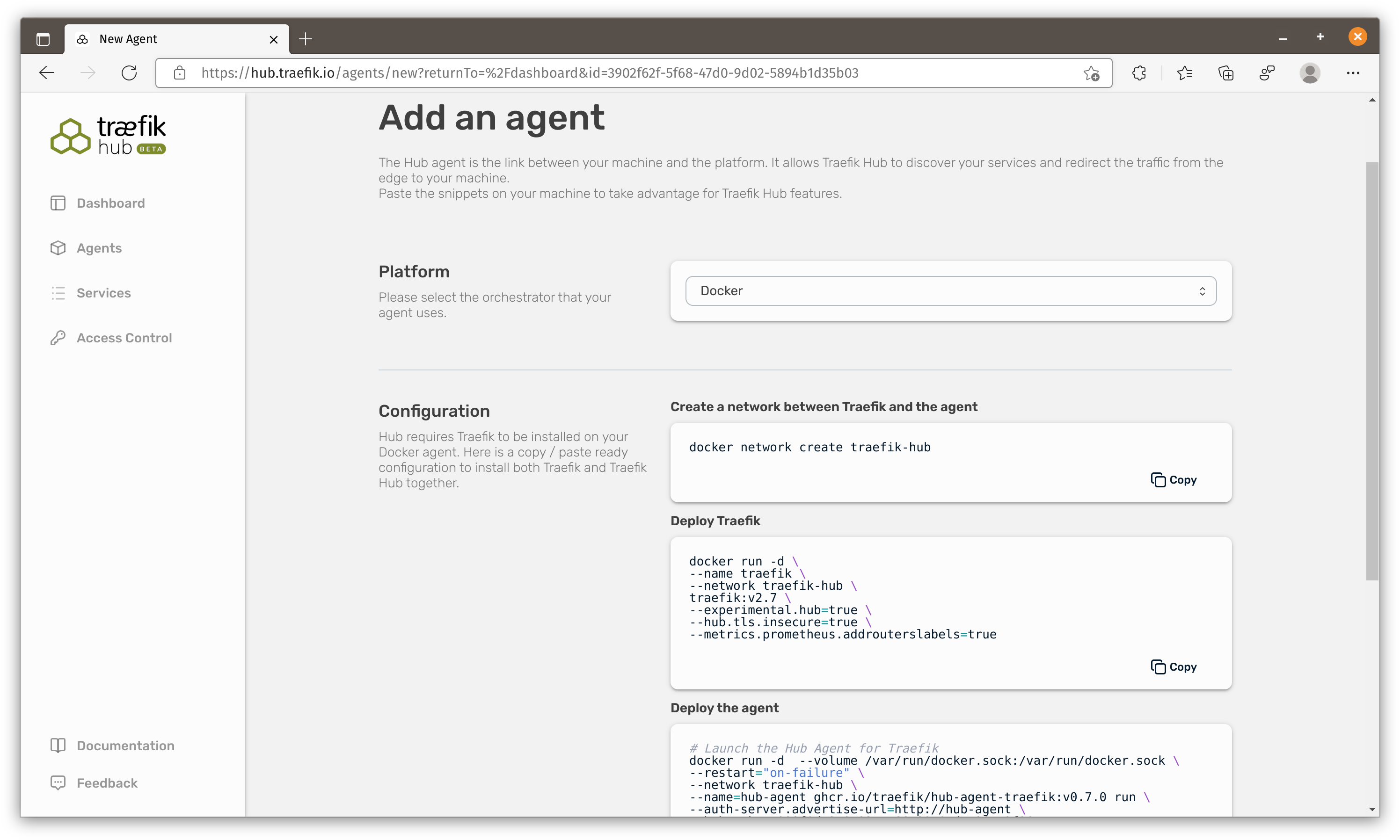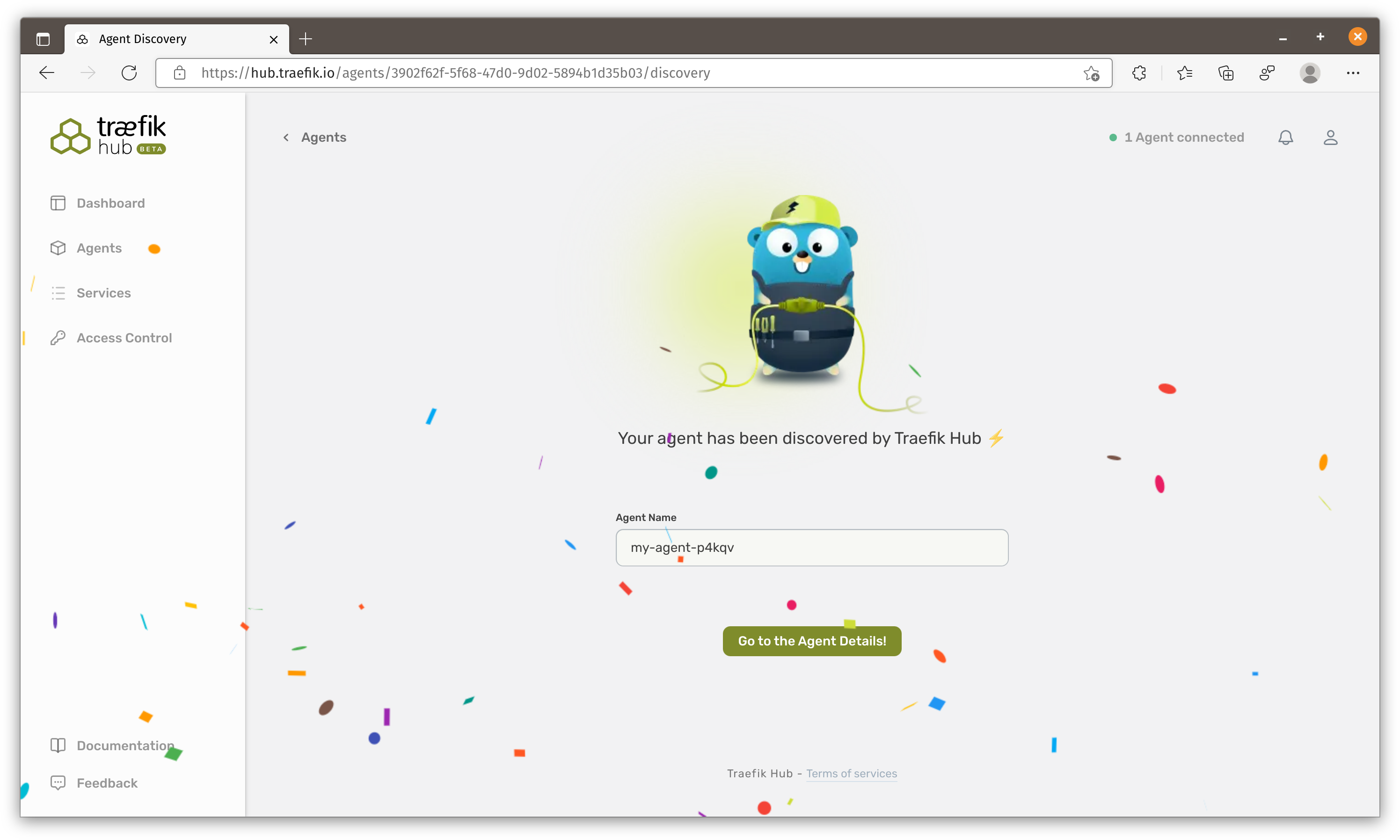 Anyway, once the containers are running and Traefik Hub control plane detects the new agent, it would ask you to name this agent.