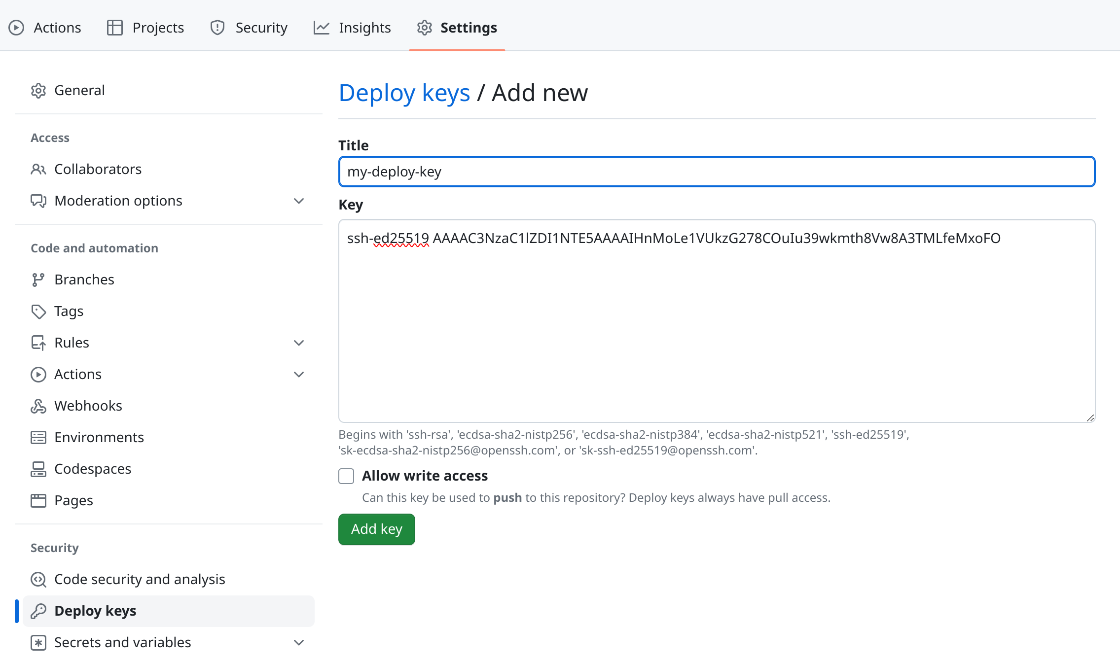 Since we do not use Flux CLI to bootstrap, we need to create deploy key to allow flux to pull changes from the Git repository manually.