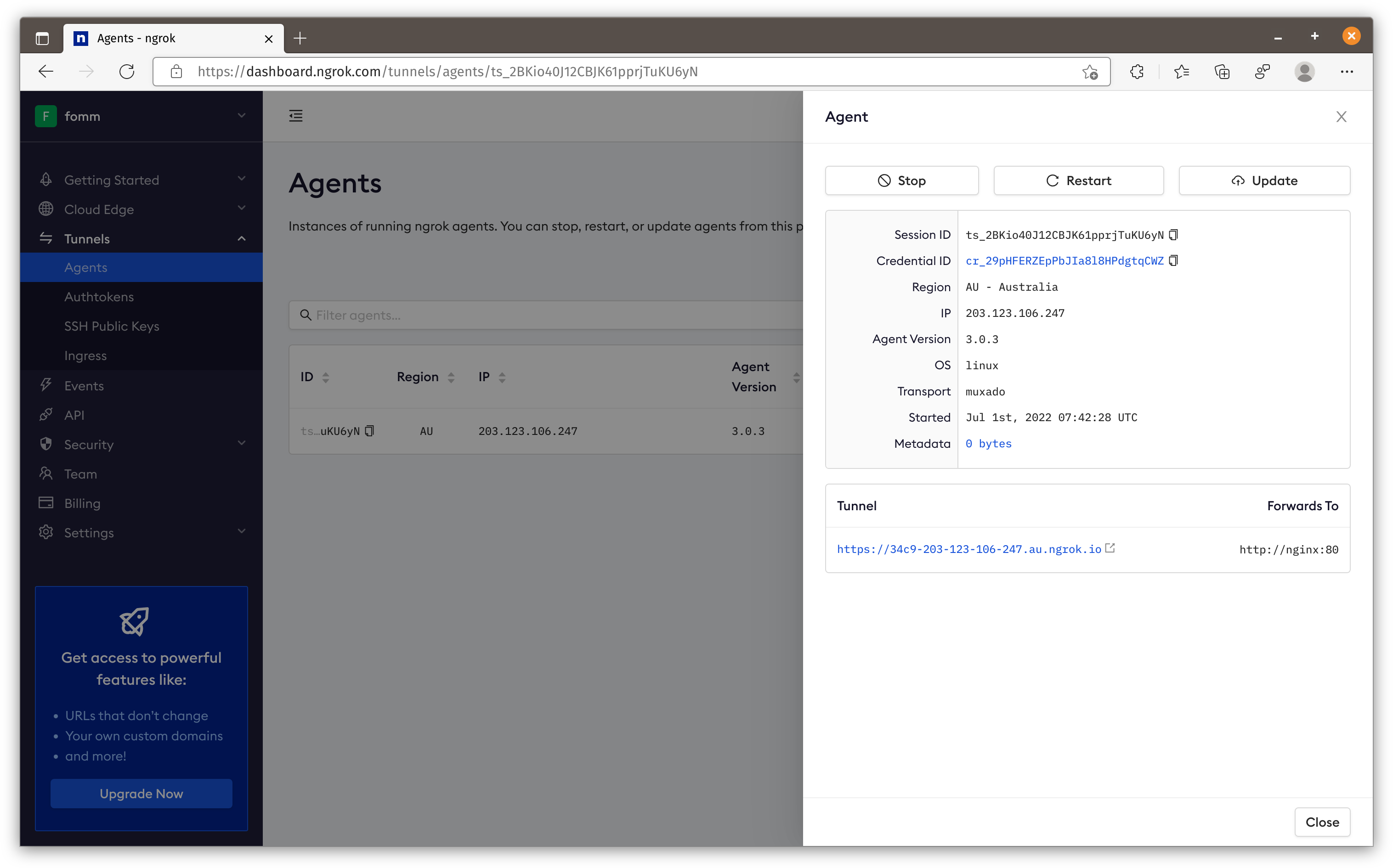 Once the tunnel is created, we can go back to our dashboard to check the detail of this tunnel.