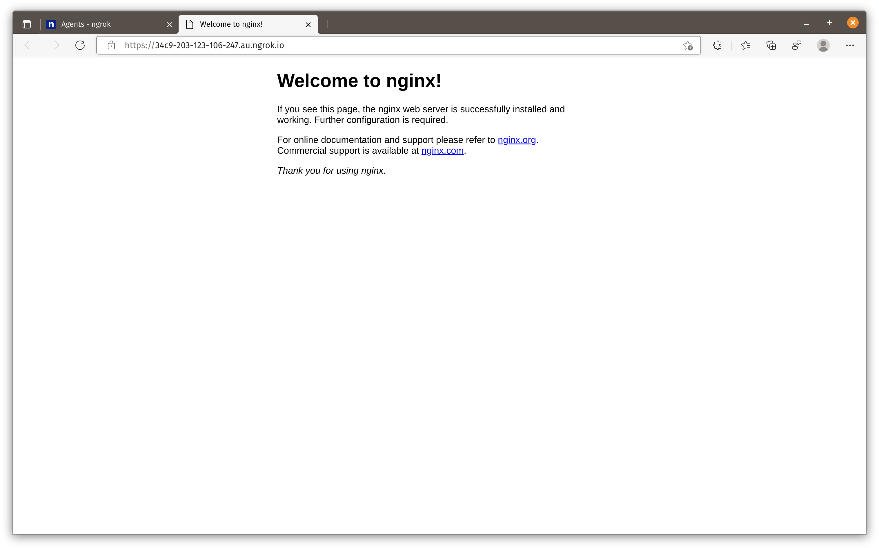 This tunnel is connected to a nginx service on the same network, listening at port 80.