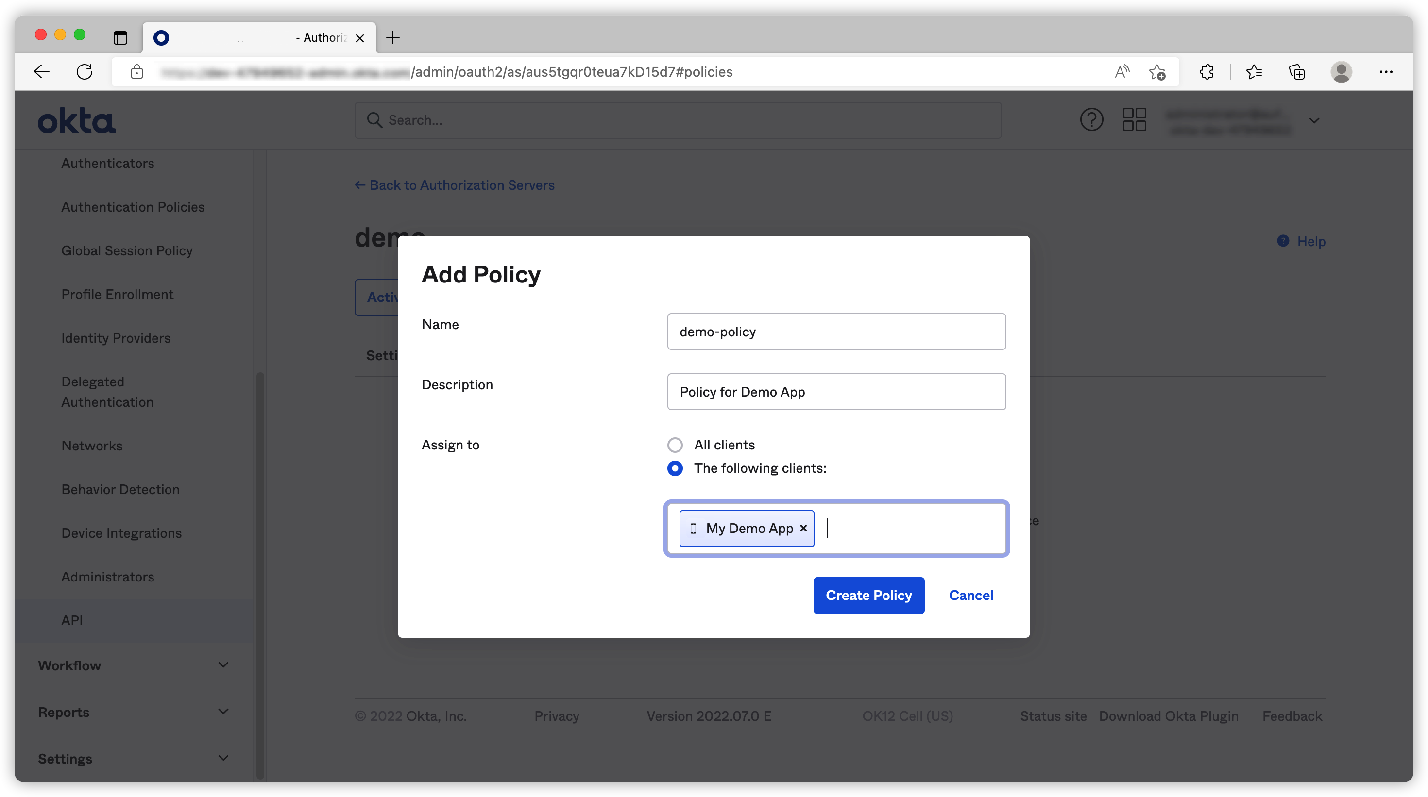 Once the new CAS is created, we need to create an Access Policies to allow our app to use it.