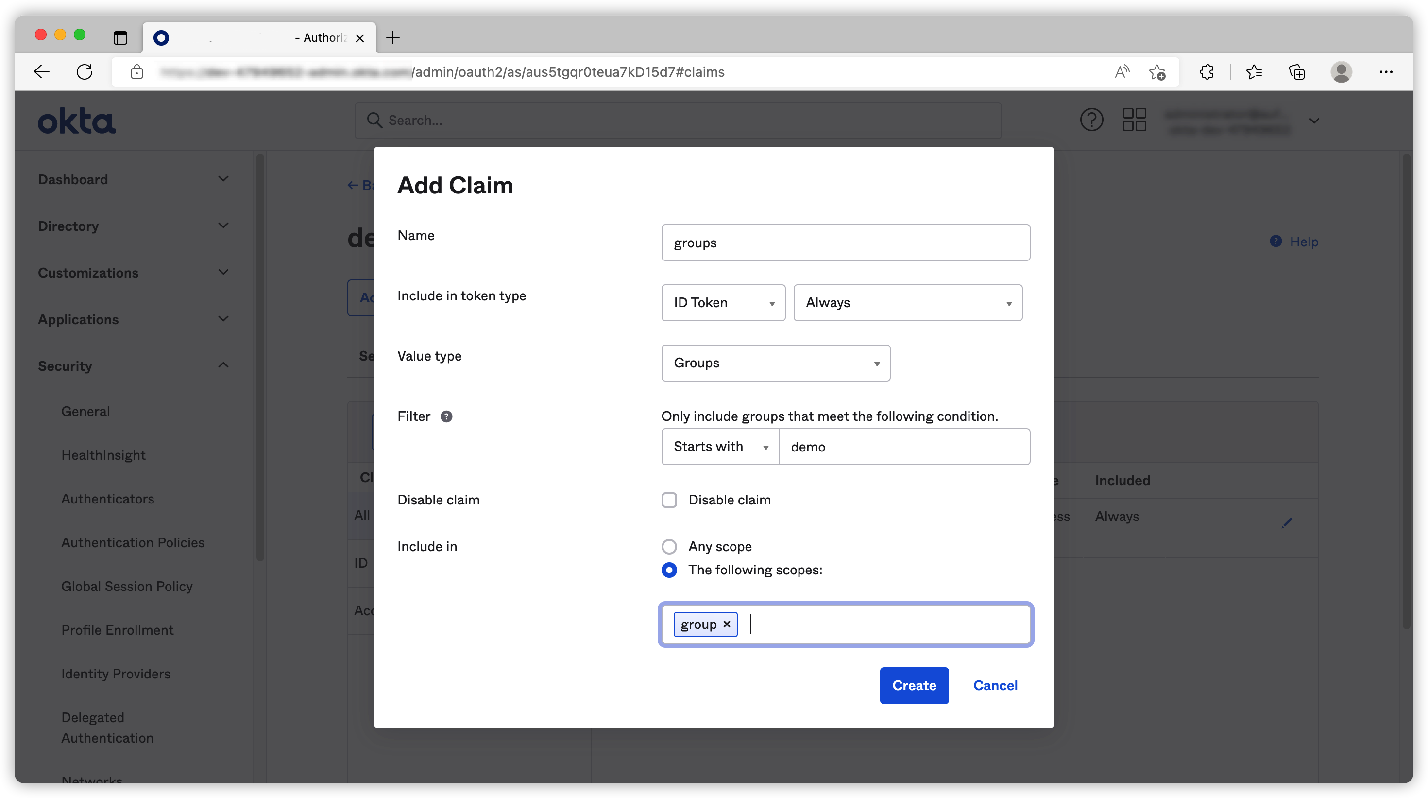 Groups claim filterunder Applications ➡️ Your App ➡️ Sign On. This filter is for OAS only. It won’t work if you request your token through CAS. You can find more information on official doc here.
