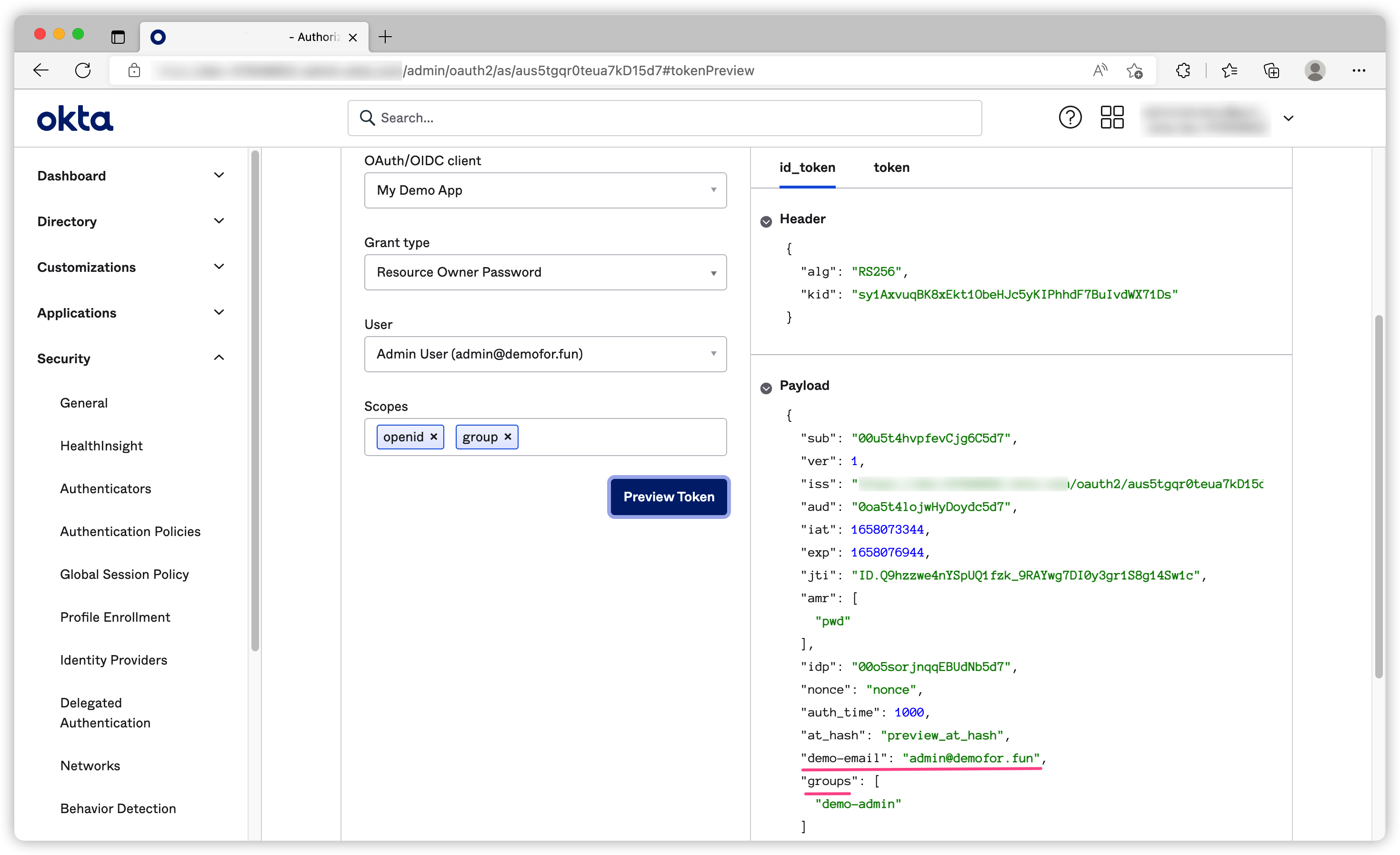 One thing I love Okta is the ability to examine what info is included on the token. This is extremely useful for debugging.