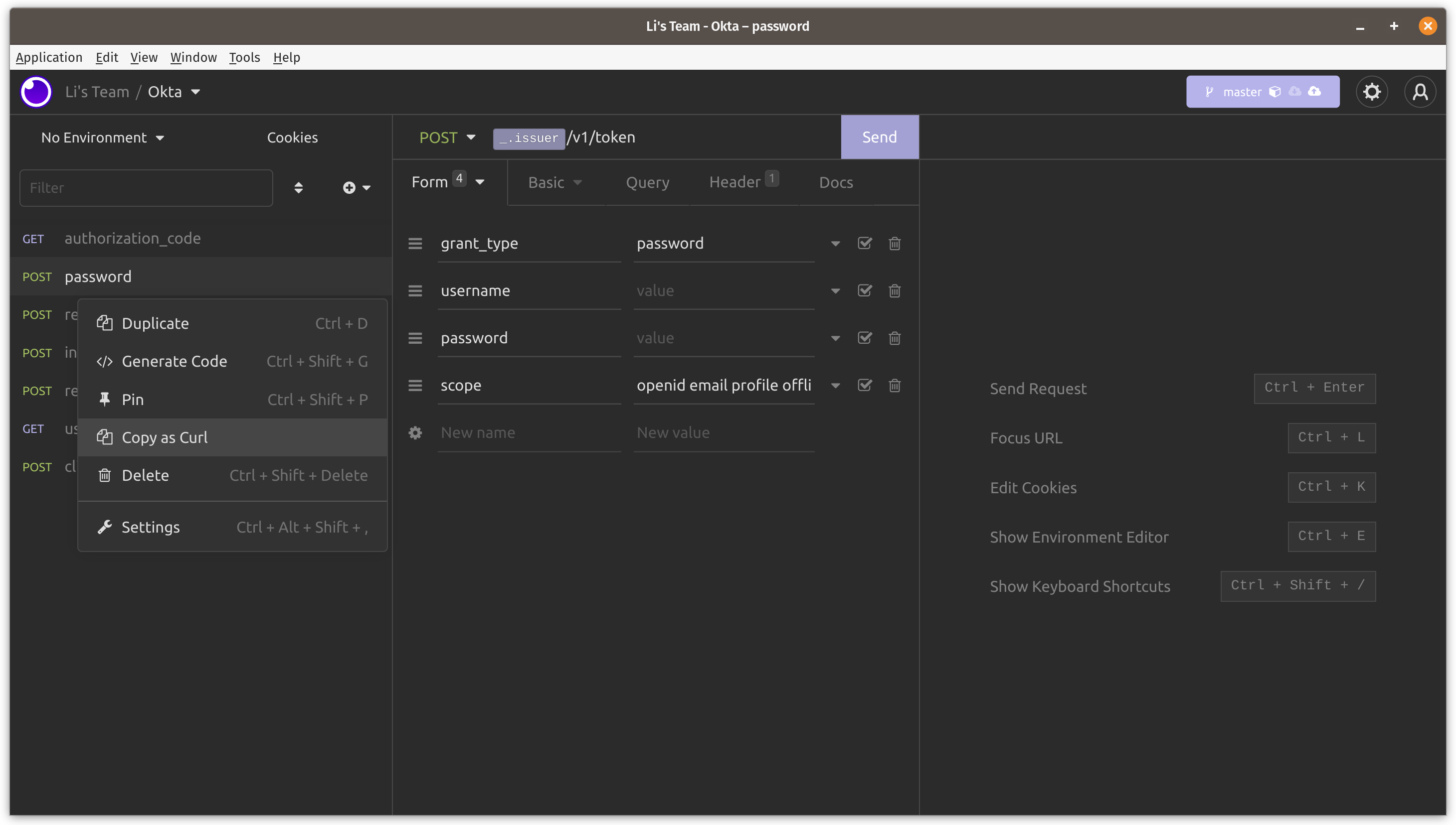 I’ve created an Insomnia collection with some Okta auth flows. You can click the button below to use it.