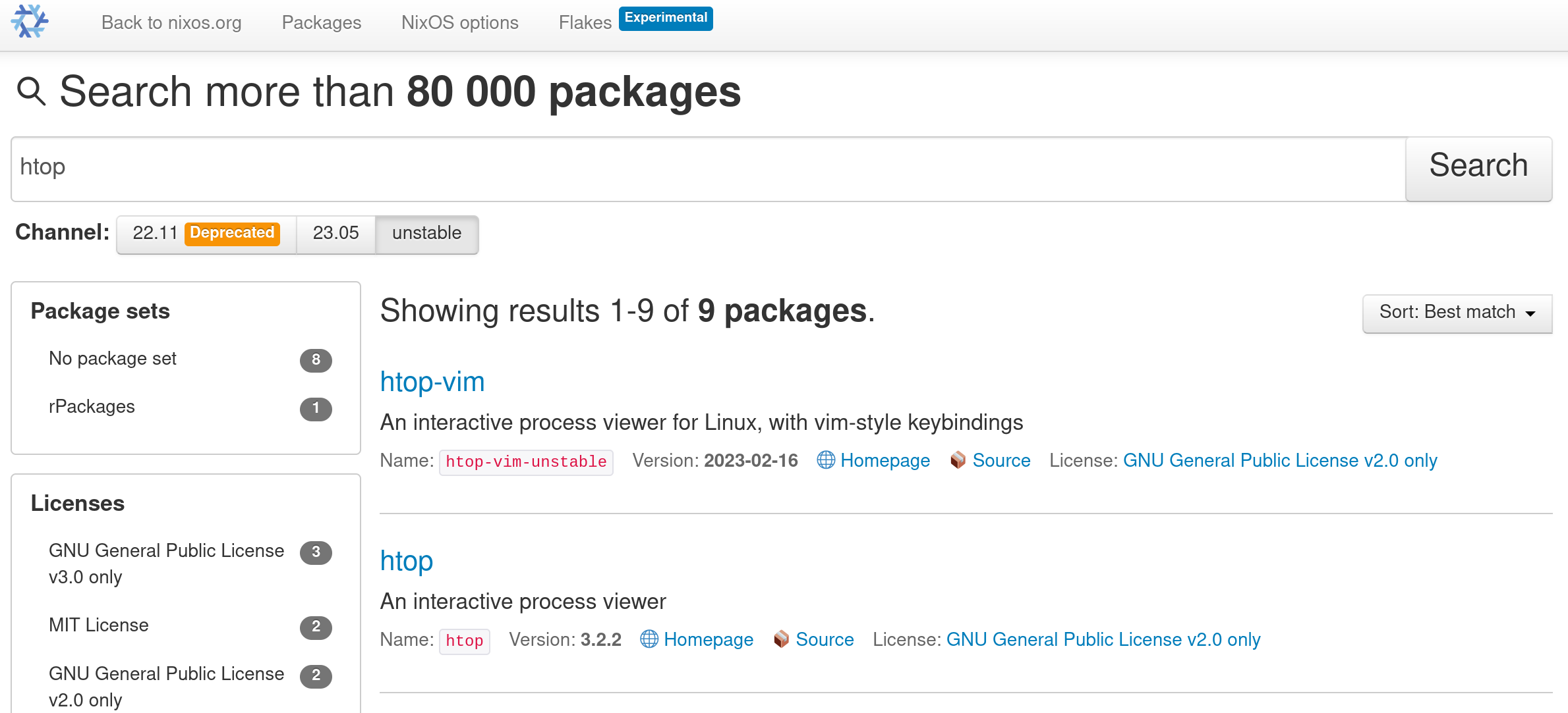 home.packages, home manager will install it for us. To find the list of applications, you can usenix searchor go to NixOS official site chooseunstable(because on the flake we use unstable branch) and search.